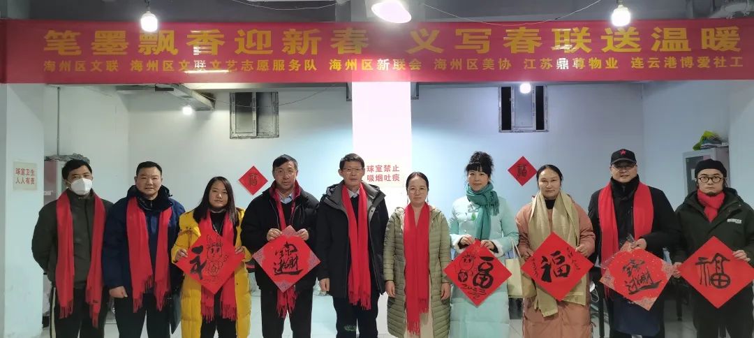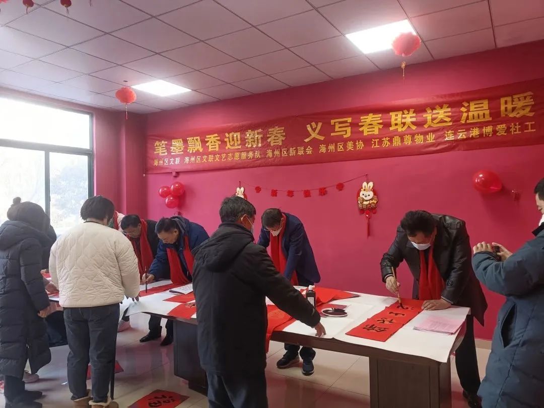 在农历新年进入倒计时的美好时刻,为传承中华民族优秀传统文化,营造喜庆热烈、文明祥和的节日氛围。江苏鼎尊物业携手海州区文联、海州区文联文艺志愿服务队、海州区新联会、海州区美协、新海街道河西社区、朐阳街道朐海社区、连云港博爱社会工作事务所于14日下午、16日上午分别在东方悦城与河畔花城举办迎新春送对联活动,用一副副火红的春联为江苏鼎尊物业的业主们送上祝福,带去欢乐.