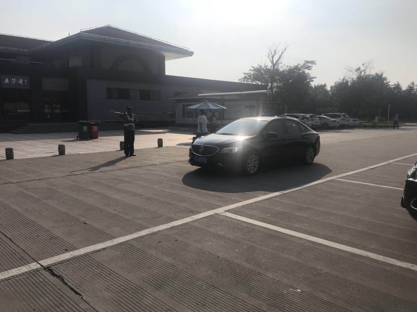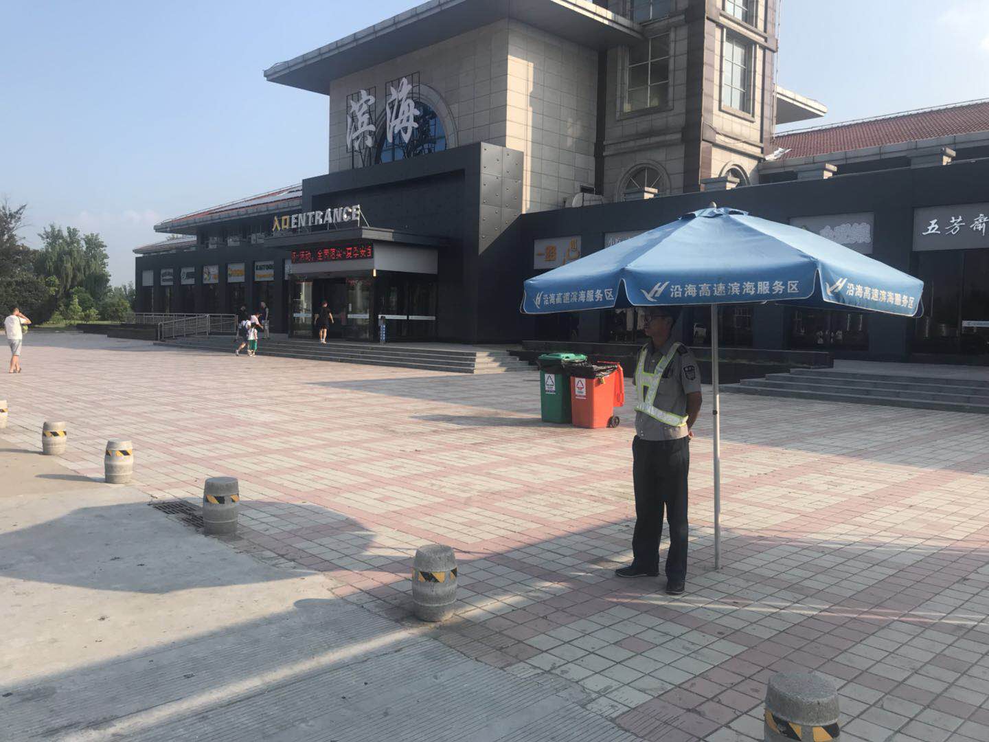 为确保服务区车辆与旅客安全,保安师傅 着炎炎烈日指挥车辆——滨海服务区