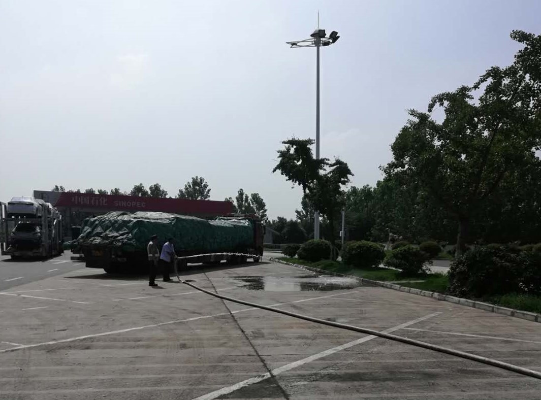 为路面及绿化带浇水降温——赣马服务区