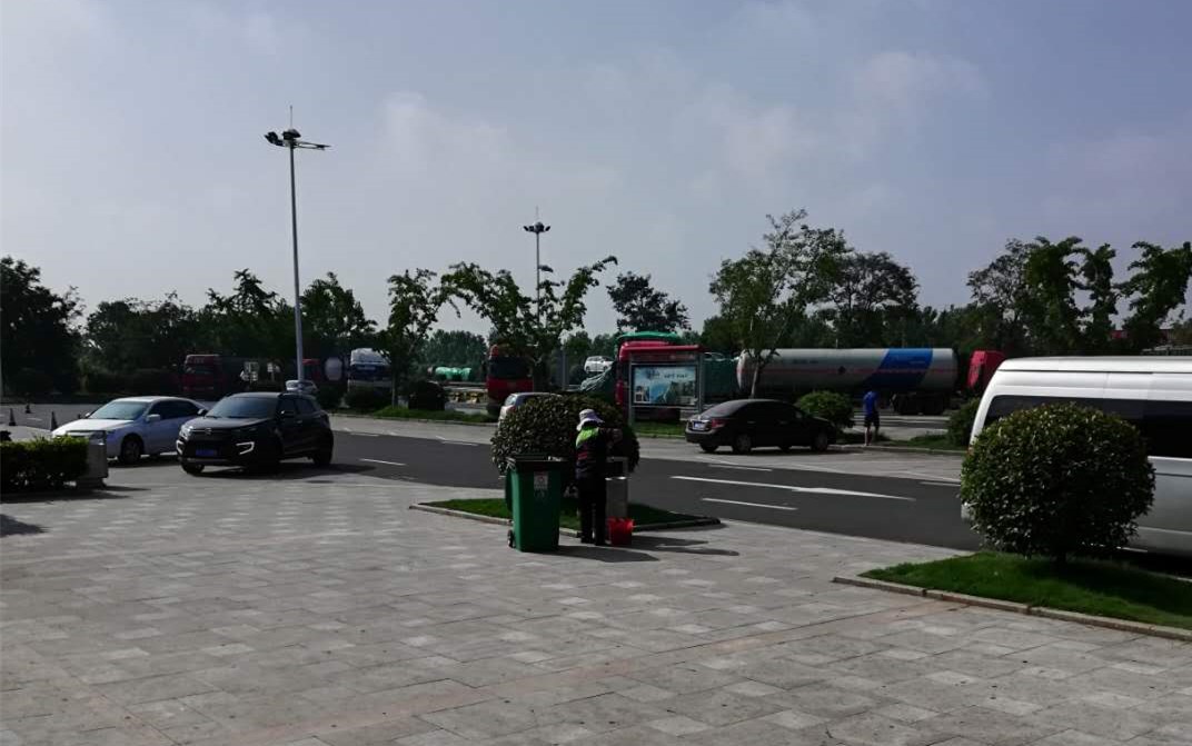 烈日下清扫,美化服务区环境——沙河服务区