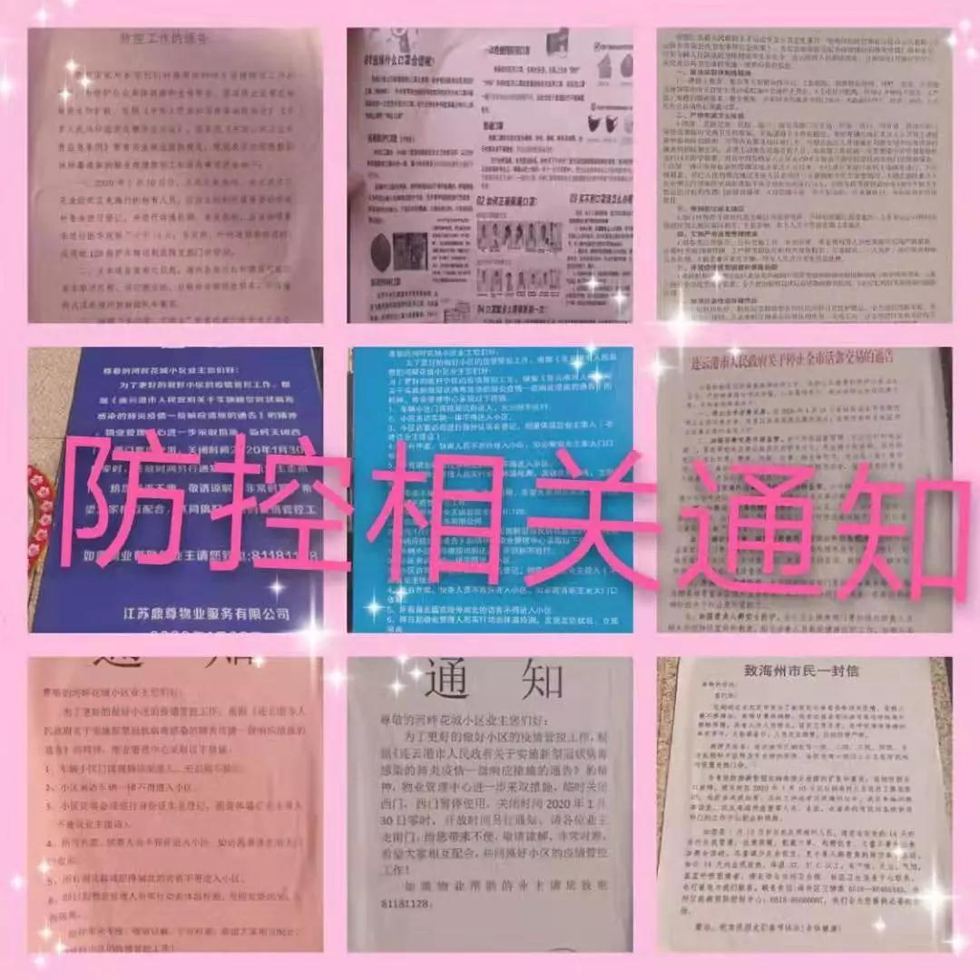 No.1定时定点 消杀防控 对业主高频接触的重点部位增加消杀频次,做到消杀工作定时、定点、有记录。对小区的地面、单元楼道、电梯间、污水井盖、地下车库等所有地方全部喷洒消毒水,每日不少于2次的定时消毒。 No.2小区居民 严防严控 在小区门口设置监测点,每位进入小区的居民都要进行体温测量,体温正常后才能进入小区,小区的另一个进门被关闭,只留一个大门供居民出入。 No.3防疫标语 宣传到位 小区的醒目位置张贴着宣传海报,电子屏滚动播放防疫注意事项,营造社会宣传氛围,不断增加居民防护意识。 No.4联合社区 响应政府号召 积极配合社区工作,响应政府号召,密切关注武汉返呼人员,对于社区下发的预防资料,及时向业主普及,时刻关注业主舆论情况,不信谣、不传谣,在日常接触过程或业主微信群内,出现冠状病毒肺炎动态的虚假言论时,即时进行制止和积极引导,避免引发恐慌。应对新冠性肺炎疫情,重在社区防排查与管控,积极做好各项防控措施,竭尽全力保护河畔花城业户的健康安全。在社区检查中受到社区领导表扬。 No.5防御工作 从自身做起 对坚守在一线的河畔花城工作人员,每日定时询问、测量体温,发现异常按相关程序及时上报、隔离,同时指导员工做好防护,佩带口罩上岗作业,这是对园区所有业主负责。 物业,一个在和平期间,几乎遭全网诟病的行业!然而正是这群人,用血肉之躯,在新型冠状病毒爆发之初的无序时期 ,为居民筑起了第一道防线!商店可以关门,餐厅可以停业,公共交通可以停运,物业,却是24小时不眠不休!他们没有专业的防护装备,没有专业的专家指导,可物业的防控动作,却一招一式快速有力!请不要指责物业人没有做更多!他们的表现,无愧于自己的职责。请善待你身边的物业人!他们从未抱怨,但他们需要理解和尊重!