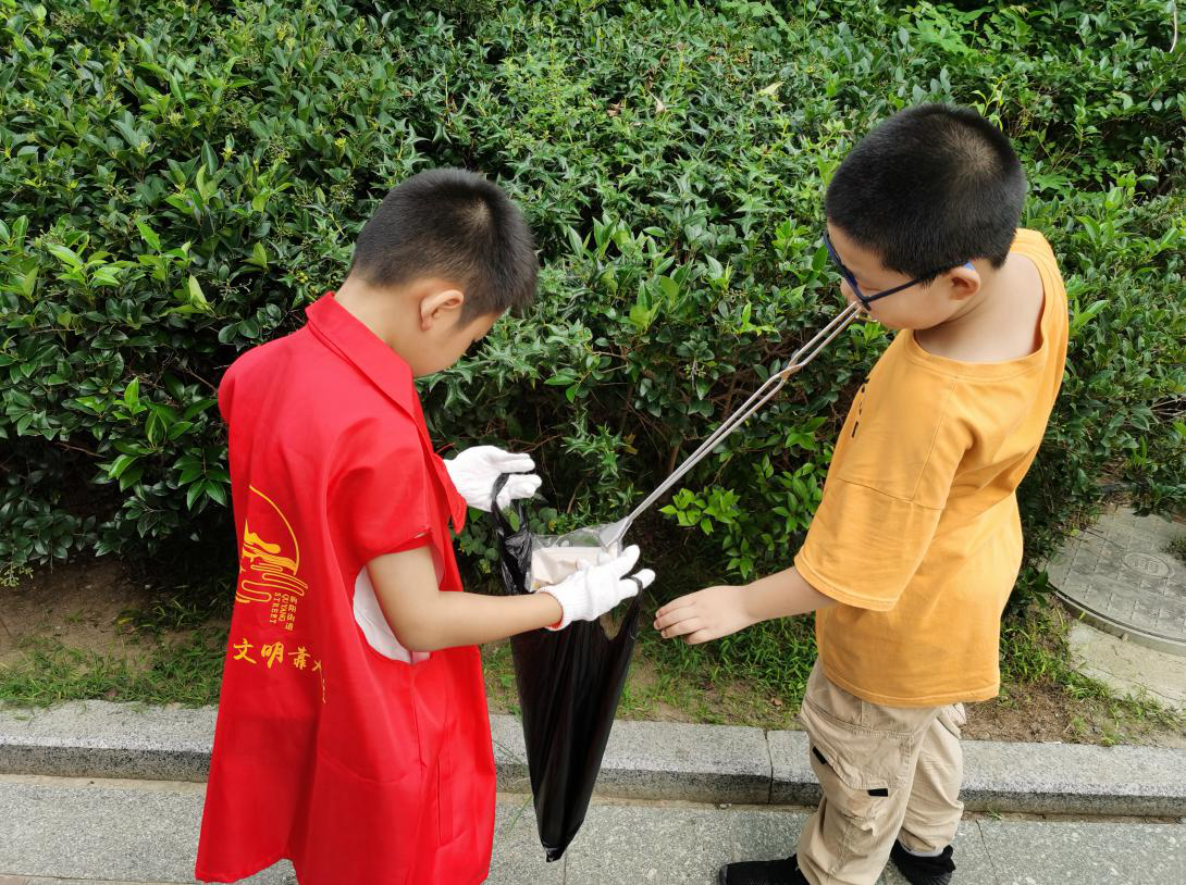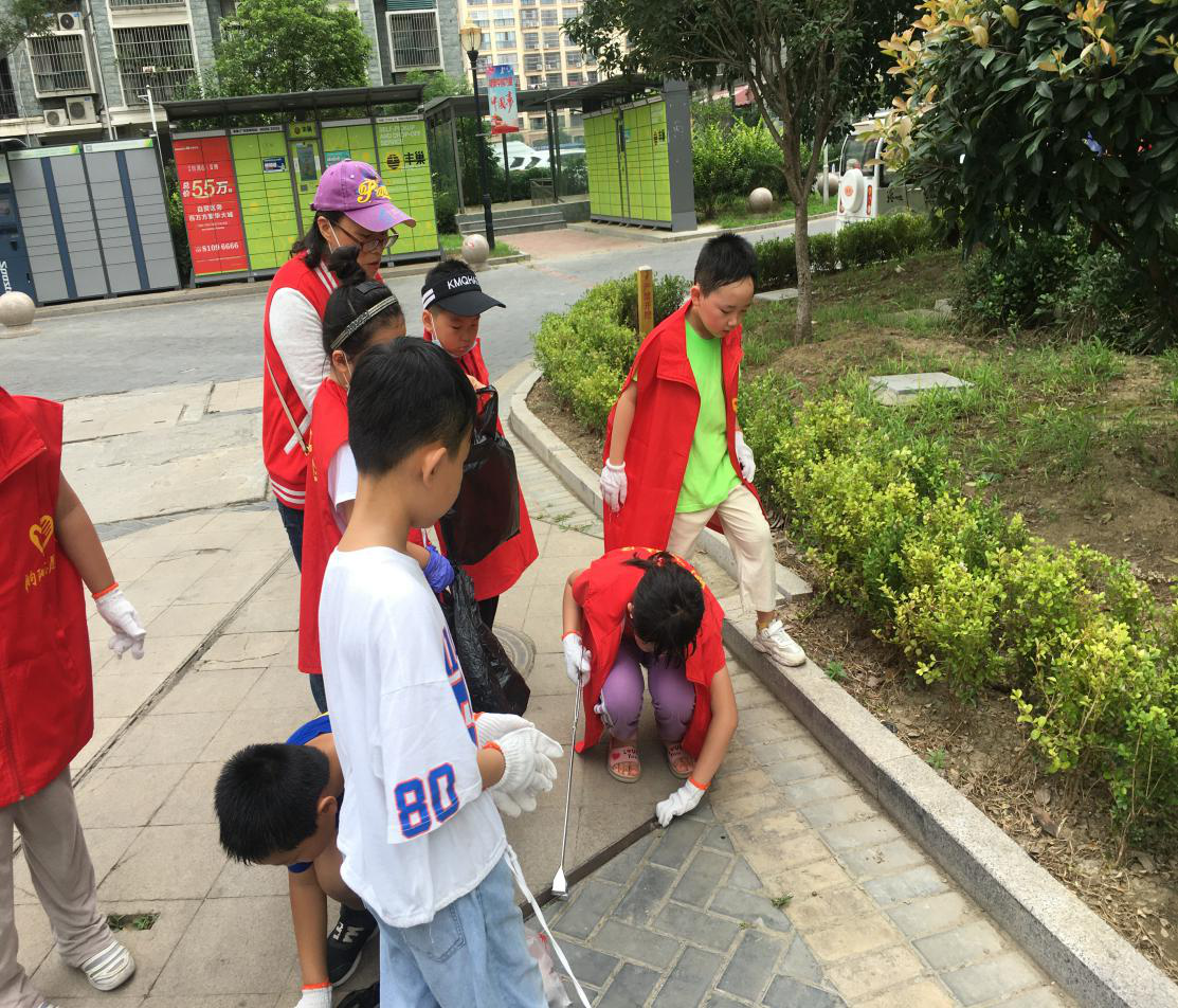 小朋友们接过物业工作人员统一分发的垃圾袋和捡拾工具,主要对小区道路、绿化带随意丢弃的卫生纸、塑料袋、瓜果皮、烟头、水泥袋等垃圾进行分捡,尽管天气炎热,活动中小志愿者们的热情却丝毫不减。他们不怕脏、不怕晒,认真的利用夹子、手套等,把散落在小区的垃圾捡起来。没过一会儿,孩子们的塑料袋满了,路旁绿化带也干净了,垃圾也都“回家”了。