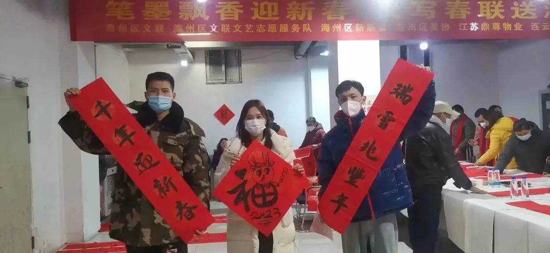 在农历新年进入倒计时的美好时刻,为传承中华民族优秀传统文化,营造喜庆热烈、文明祥和的节日氛围。江苏鼎尊物业携手海州区文联、海州区文联文艺志愿服务队、海州区新联会、海州区美协、新海街道河西社区、朐阳街道朐海社区、连云港博爱社会工作事务所于14日下午、16日上午分别在东方悦城与河畔花城举办迎新春送对联活动,用一副副火红的春联为江苏鼎尊物业的业主们送上祝福,带去欢乐.