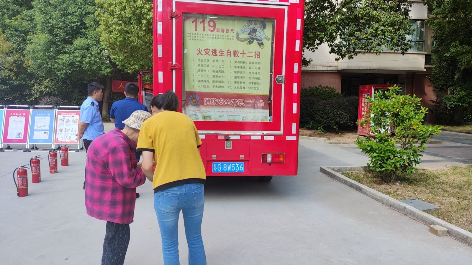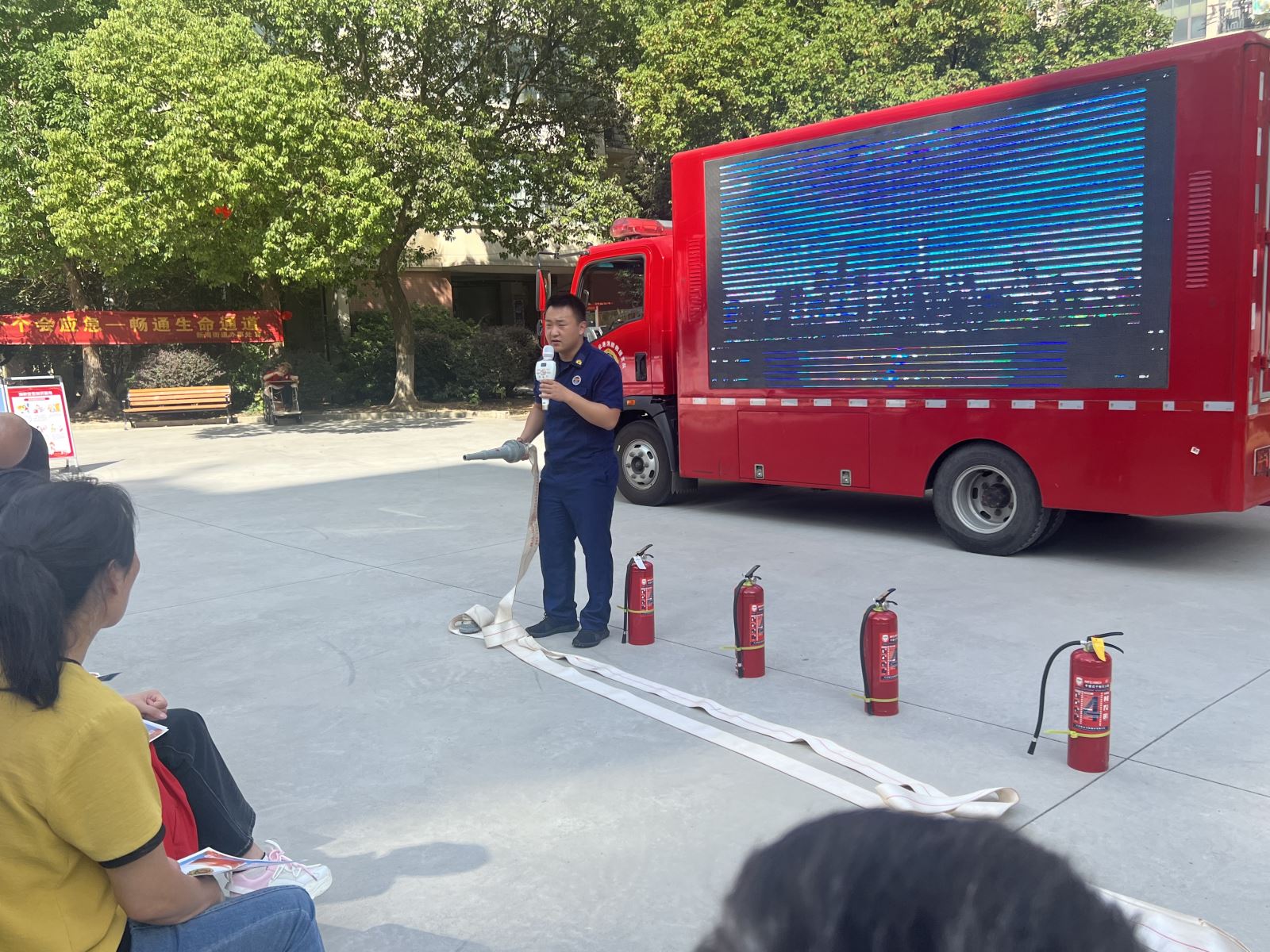 活动中,消防人员将消防车开到活动现场,向居民们讲解消防车辆及灭火救援器材装备,并现场操作展示各项器材如何使用。便于大家深入学习消防安全知识,物业工作人员和志愿者还为大家发放家庭防火、电动车防火安全宣传彩页、消防安全知识手册,提高居民们对消防安全学习的热情。