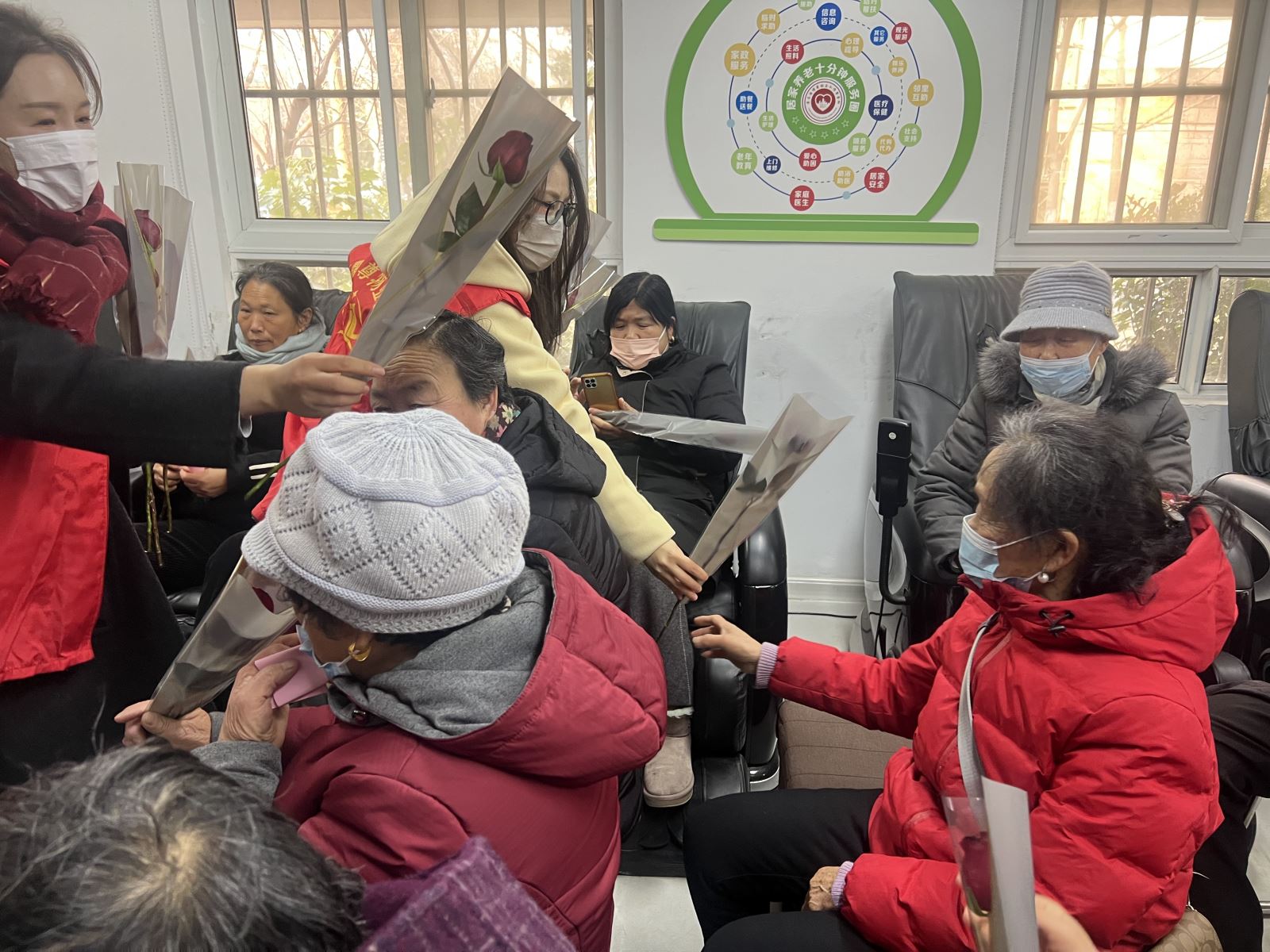 活动最后,物业工作人员为每一位老年女性送上玫瑰花、护手霜、泡脚包、香皂等礼品并致以节日祝福。大家手捧鲜花,激动不已,纷纷表示感受到了鼎尊物业的温暖与关怀。