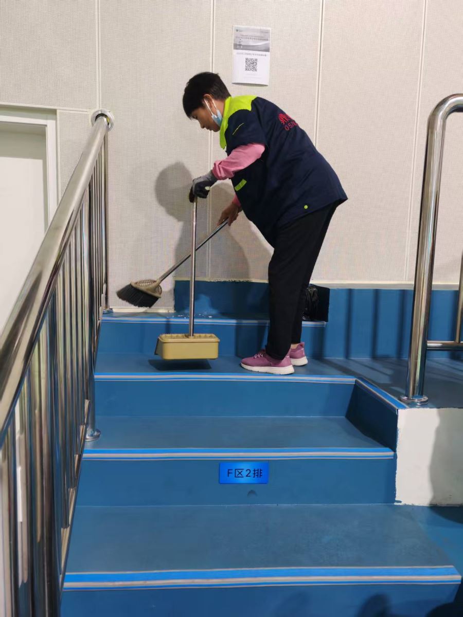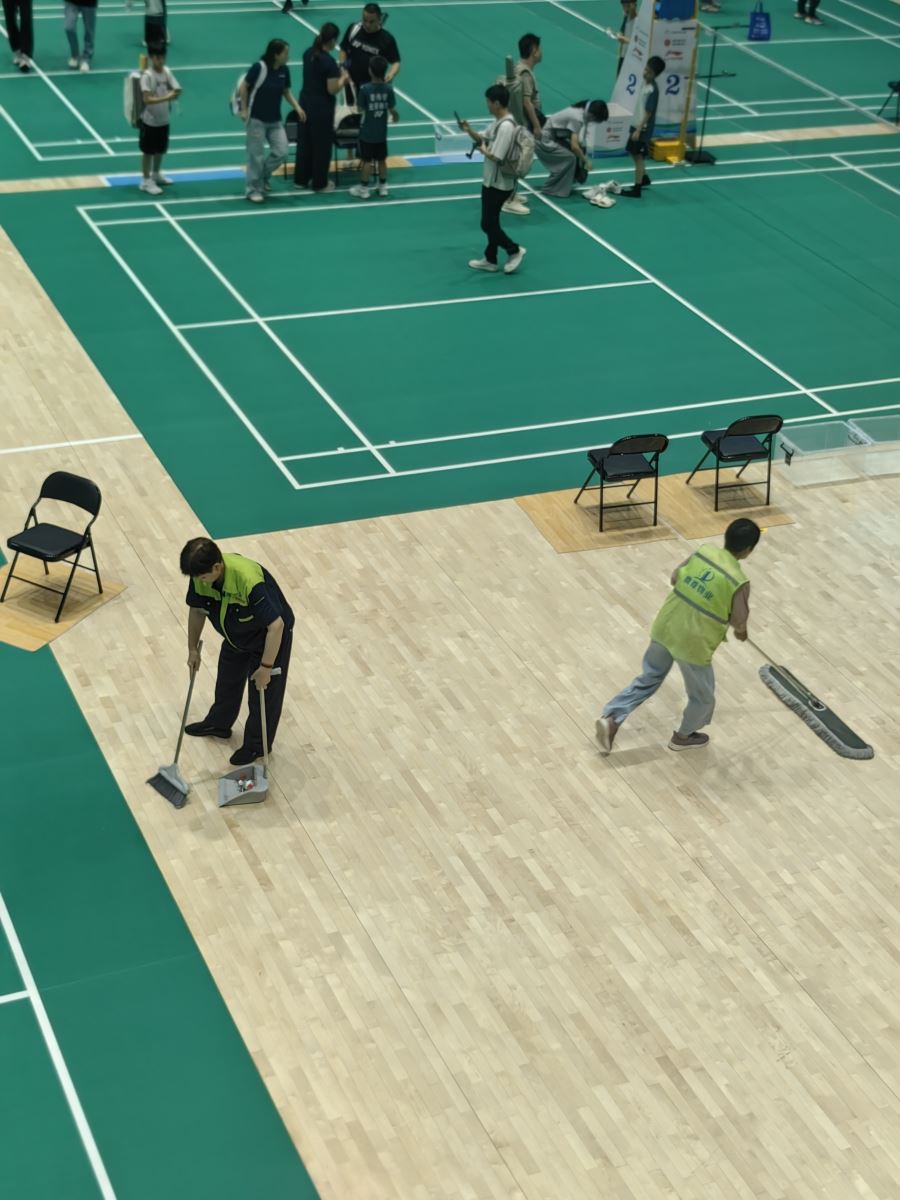 实时清洁,不留死角是保洁工作的核心要求。比赛间隙,保洁人员会迅速对场地周边的座椅、通道进行清扫,确保观众席无垃圾堆积;运动员休息区的水杯、毛巾等物品被及时整理,保持区域整洁有序;就连场馆外的公共卫生间,也安排了专人定时清洁消毒,避免异味和污渍。