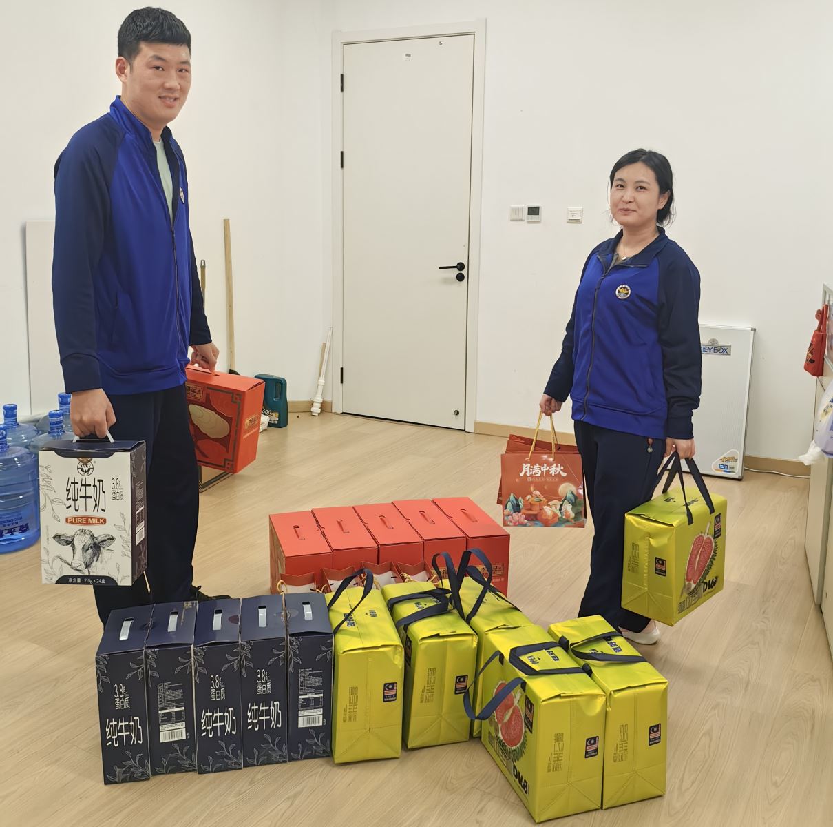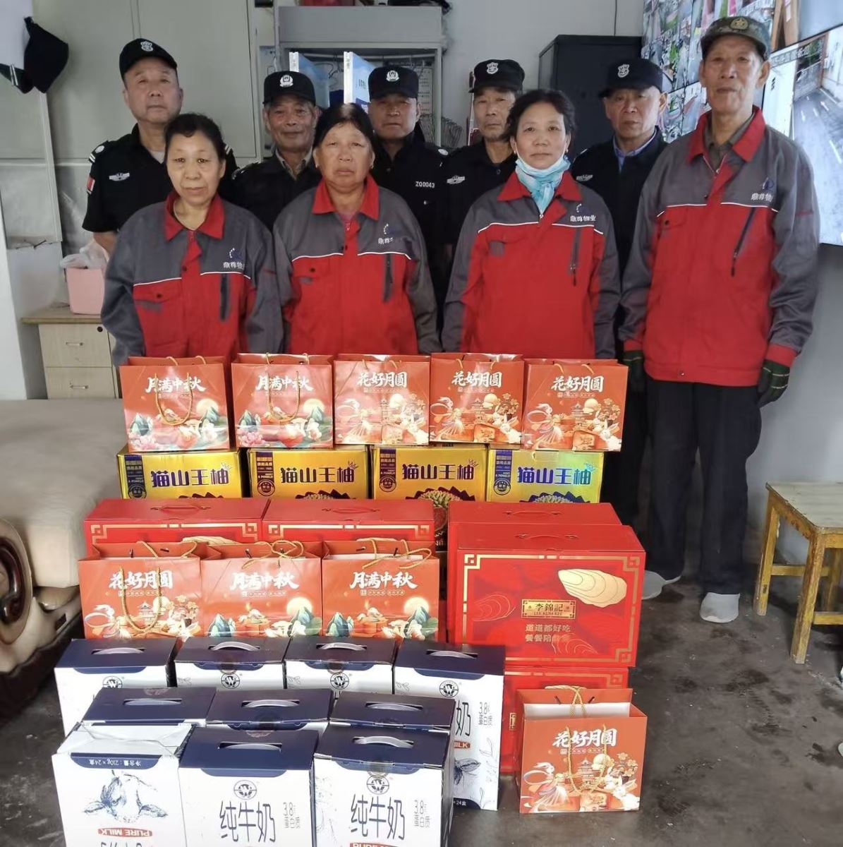 鼎尊物业一直以来都高度重视员工的感受,深知员工是企业发展的核心力量。为了让大家在双节期间感受到家的温暖,公司精心筹备了丰富多样的节日礼品。一箱箱新鲜的牛奶,为员工补充营养与活力,就像公司对员工的关怀,源源不断又实实在在;色泽鲜艳、果香四溢的水果,它们不仅是美味的享受,更寓意着生活的甜蜜与美好;象征团圆的月饼,承载着公司对员工家庭和睦、幸福美满的祝愿;还有各类调味品,为员工的餐桌增添了丰富的滋味,让每一顿饭都充满家的温馨。