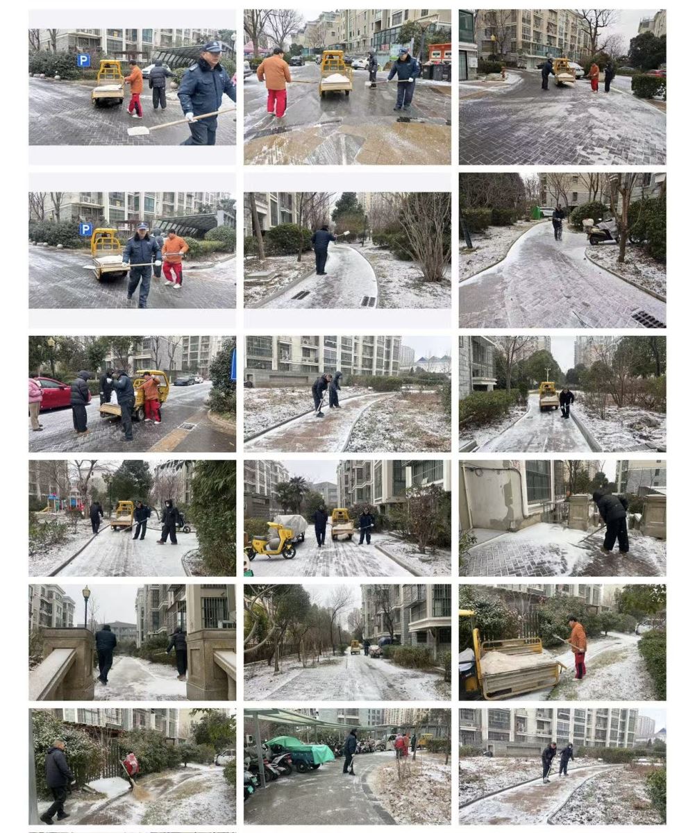 清晨六点,第一缕微光穿透雪雾,业主们推开窗时,望见的是一条条畅通的“安心路”:主干道积雪已清运完毕,单元门口铺着防滑垫,地库入口的斜坡撒满橙黄色的融雪剂,连健身器材旁的小径都清理出可供通行的便道。